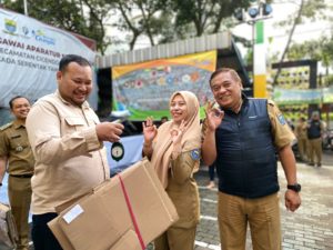Kegiatan Pengumpulan dan penimbangan sampah dalam program kang pisman yang di laksanakan oleh seluruh pegawai kecamatan dalam mengurangi sampah dan memilah sampah.