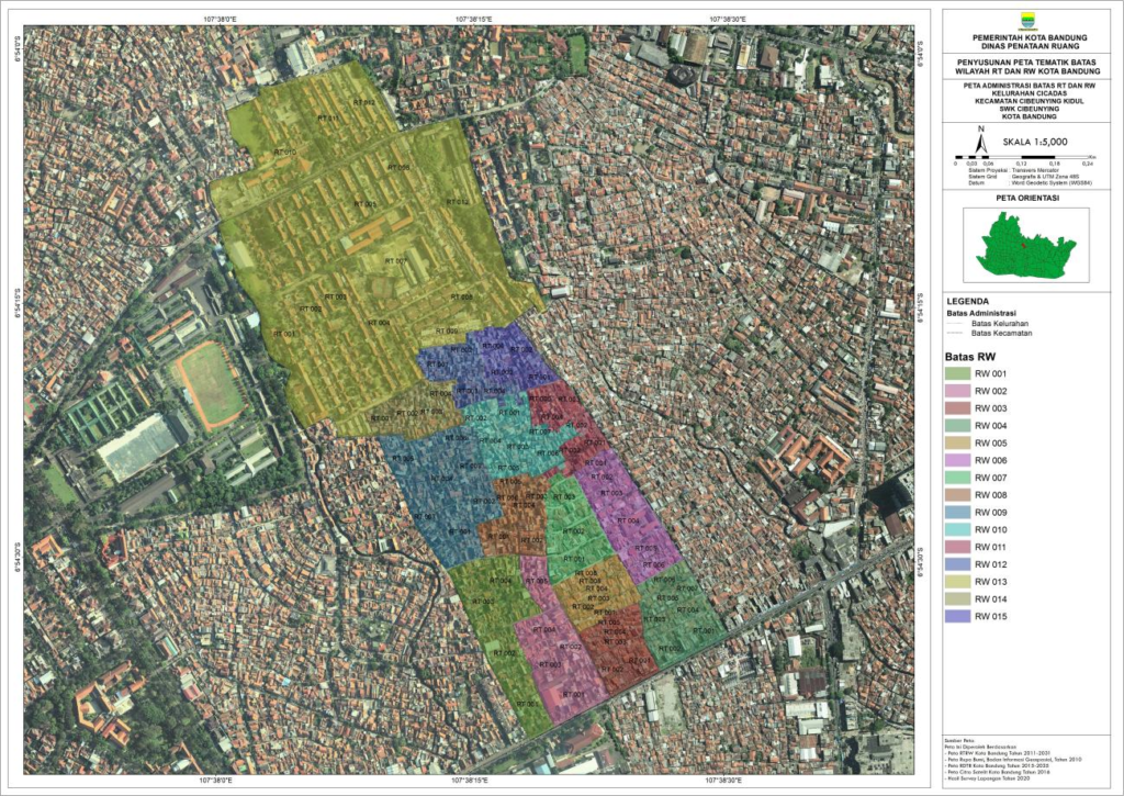 Kelurahan Cicadas Kecamatan Cibeunying Kidul merupakan salah satu bagian wilayah Barat Kota Bandung dengan memiliki luas lahan sebesar 55 Ha. Secara Astronomis terletak pada 107,63303 BT-107,641722 BT dan 6,901094 LS – 6,911275 LS