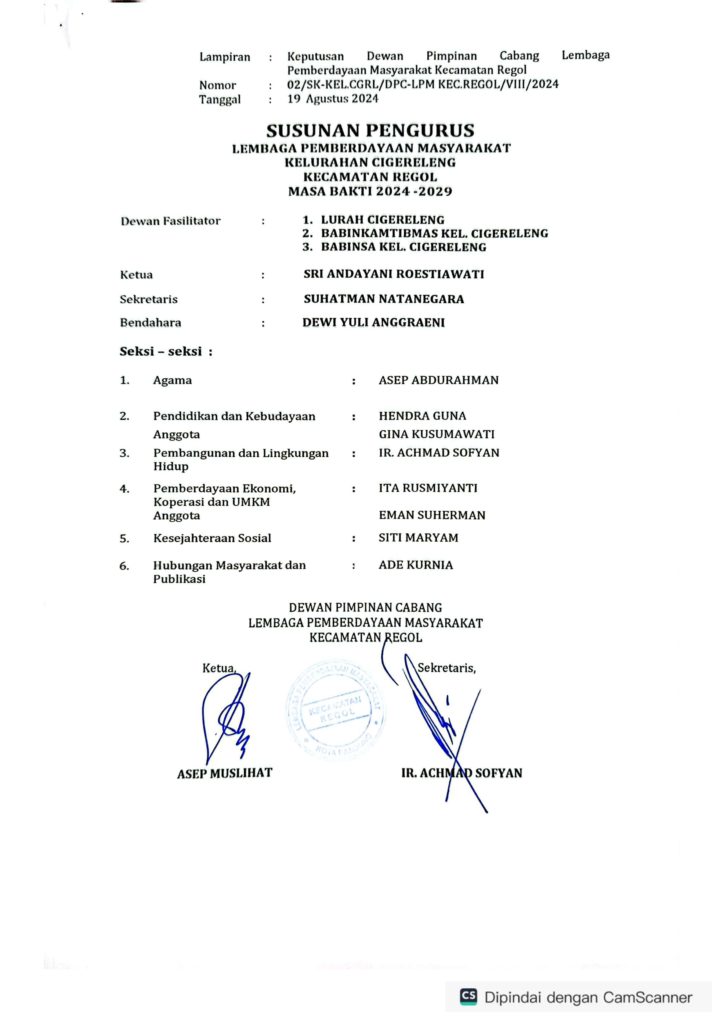 SUSUNAN KEPENGURUSAN LPM KELURAHAN CIGERELENG